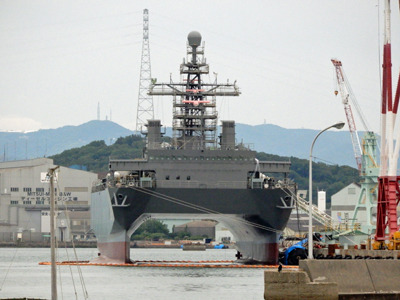 現役のころ、通勤時におおすみ型の建造中の姿を見ることができました。しもきたは,よく玉野に帰ってきているのですが,おおすみは,あまり姿を見ることがありません。民間船と接触事故を起こした件でいろいろ言われているようですが,明らかに,民間船の無謀な操船が原因なんだからね!と地元としては声を大にして訴えたい!!