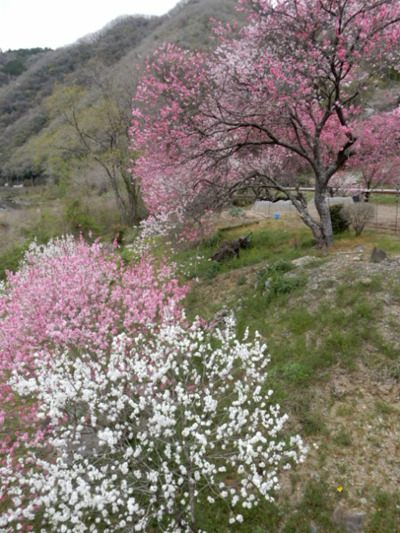 最寄りの駅は伯備線の方谷駅(ほうこくえき 駅舎が平成23年3月18 日に開催された国の文化審議会で答申され、登録有形文化財(建造物)になりました。)花桃の木は,伯備線の線路と高梁川の間に植えられています。花桃の里というのぼりが立っていますが,高知県のそれよりはかなり規模が小さいです。発展途上、今後に期待ということで。